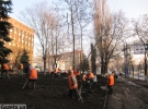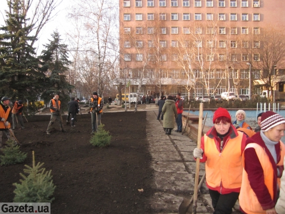 "А пока мы митинговали, из грузовиков высадился десант из 40 работников коммунальных служб. Их охраняли два десятка милиционеров. Они погасили костер и начали сажать елки, так чтобы нам больше негде было ставить палатки", - рассказал участник акции Петр Балаклеец.