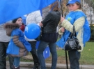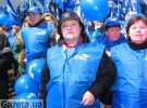 Перед началом мероприятия всем желающим раздавали зонты, кепки, брелки, фонарики, воздушные шары, аудио-диски "Слушаем и поем на родном языке", и другие подарки с символикой Партии регионов.