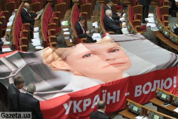 Сегодня ровно в 16.00 вице-спикер Верховной Рады Адам Мартынюк открывает вечернее заседание. В зале регистрируются 338 карточек народных депутатов. Посреди зала, как всегда, большой траспарант с изображением Юлии Тимошенко.