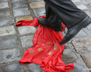 Как следствие, представители ВО "Свобода" разорвали, а потом сожгли красный флаг Коммунистической партии на Крещатике.