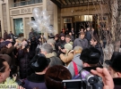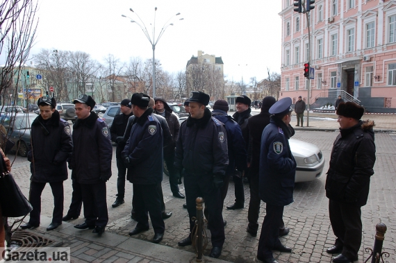У гостиницы "Интерконтиненталь" дорогу десяти митингующим преградили шестеро милиционеров. Еще 30 правоохранителей в штатском стояли рядом. Студентка, лидер "Братства Святого Луки" Анна Синькова показала разрешение на проведение акции, но милиционеры не отреагировали.