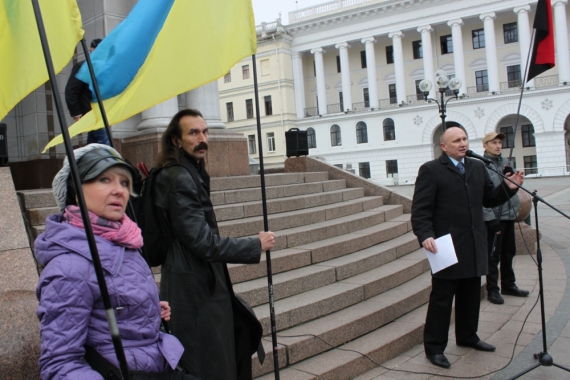 Присутствует координатор Комитета освобождения политзаключенных Николай Кохановский зачитал заявление оргкомитета Дня Свободы по поводу угрозы срыва подписания Соглашения об ассоциации между Украиной и ЕС.