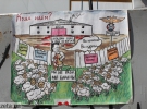 Сегодня в 7 часов утра правоохранители огородили палатки железными заборами. Митингующие украсили серые заборы наклейками с Юлией Тимошенко и разными надписями. Людям раздают листовки "Она не сдалась. Все в Печерский суд!"