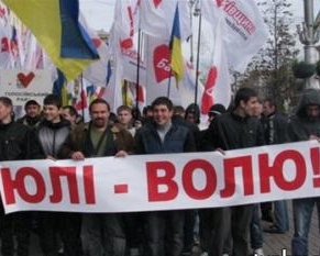 Депутаты от "Батькивщины " пришли на заседание Верховной Рады в регланах с изображением экс-премьера с надписью "Юле-волю". Некоторые из народных избранников в белых регланах с надписью "Украине - ВОЛЮ!"