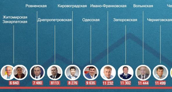 В среднем каждый губернатор обошелся государству в 11,5 тыс. грн.