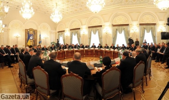 В заседание приняли участие члены Совета регионов премьер-министр Николай Азаров, новоназначенные министры и главы областных, Киевской и Севастопольской городских администраций.