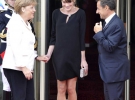 На встрече политических лидеров стран, участвующих в саммите "Большой восьмерки", Карла Бруни появилась в платье-футляре. Однако замысловатый крой наряда все-таки не скрыл то, о чем таблоиды регулярно сообщают уже несколько недель: президентская чета готовится к пополнению, пишет Kleo.ru.