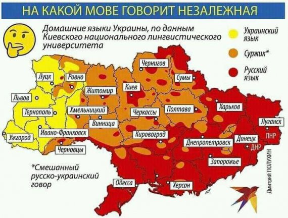 Обнародованная Рабиновичем картинка является примитивным примером российской пропаганды и делит страну по языковому признаку. Якобы в южной и восточной частях Украины общаются исключительно на русском языке, а в центральной – на суржике.