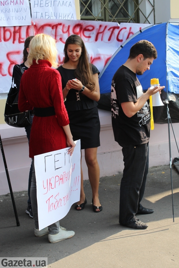 Милиция не позволила сегодня установить палатки у входа в здание Киево-Могилянской академии, но студенческая акция протеста с требованиями отставки Дмитрия Табачника с должности министра образования все равно продолжается.