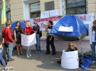 Около 20 студентов держат государственный флаг и написанные от руки транспаранты: "Долой украинофоба Табачника" и "Я тебя породил - я тебя и убью! - подпись: украинский народ".