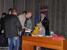 После речи депутата, которая длилась час, слушатели начали задавать вопросы. Андрей Слободянюк из города Ватутино, в квадратных очках и клетчатом шарфе, спрашивает мнение депутата относительно намерений Виталия Кличко идти в президенты.