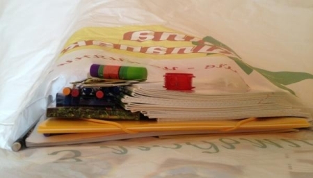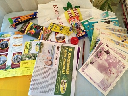 Наборы со школьными принадлежностями и тетрадями разносили в Печерском районе столицы, сообщает корреспондент "Украинской правды".