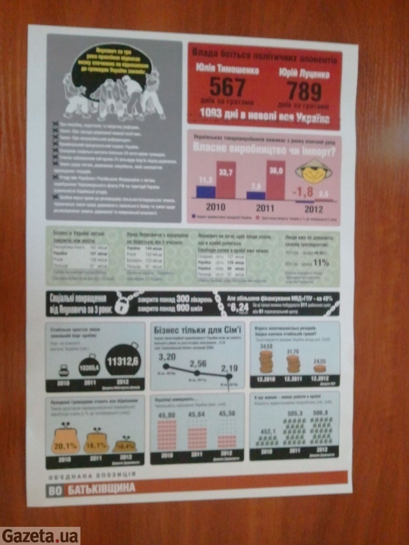 На листовке также есть надпись "Объединенная оппозиция "Батькивщина".