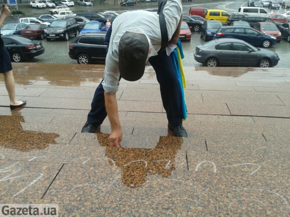 Несколько активистов написали на лестнице Украинского дома в Киеве стихи, посвященные украинскому языку. Таким образом они отметили первую годовщину "языкового майдана", который проходил на этом месте год назад.