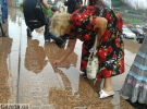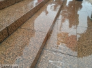 На акцию собралось около десяти человек. Преимущественно это люди преклонного возраста. Несмотря на сильный дождь они мелом написали на лестнице несколько стихотворений. Но ливень их сразу смыл.