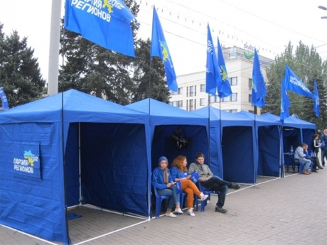 Яковлев при этом уточнил, что на площади им. Ленина сейчас выставлены около 15 агитационных палаток "Партии регионов".
