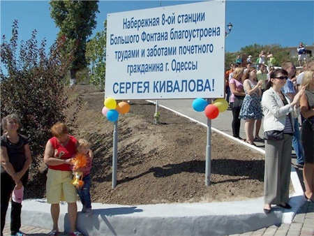 "Набережная 8-й станции Большого Фонтана благоустроена трудами и заботами почетного гражданина г. Одессы Сергея Кивалова", - гласит табличка.