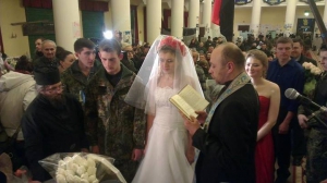 На Майдане вчера обвенчалась пара активистов, пишет Сегодня.