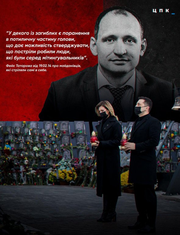 "На фото вы видите Зеленского рядом с мемориалом Небесной сотни. На том же фото Тараров врет, что героев убивала не беркутня, а их же побратимы.