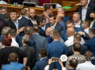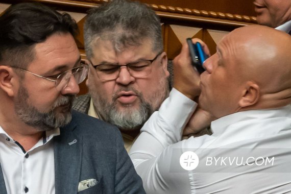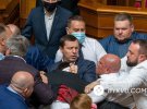 К трибуне подошли нардепы из ОПЗЖ Илья Кива и Олег Волошин. Кива толкнул депутата от СН Богдана Яременко. Началась потасовка.