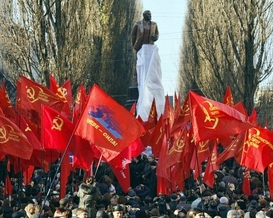 Несколько тысяч коммунистов собрались возле памятника Ленину в Киеве.