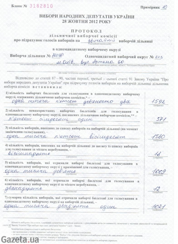 Юридическая служба Всеукраинского объединения "Свобода" получила копии протоколов с мокрыми печатями из 4-х избирательных участков киевского 223-го избирательного округа, согласно которым результаты провластного кандидата Виктора Пилипишина существенно отличаются от обнародованных на сайте Центральной избирательной комиссии.