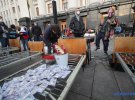 Люди принесли к ОП кровати, на которые положили фальшивые доллары, золотой батон, икру и шампанское, пишет "Укрінформ"