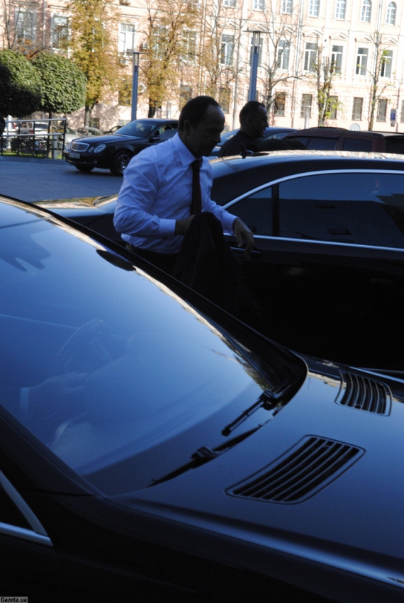 У входа в пятизвездочный отель "Хайят" во вторник, 11 сентября, останавливается черный "мерседес" вице-премьера Сергея Тигипко. Тот встает с заднего сиденья автомобиля. Одет в белую рубашку и брюки. Держит в руке пиджак. Перед дверью одевает его, поправляет галстук, застегивает пуговицу и смотрит на часы. За ним следуют два охранника в костюмах.