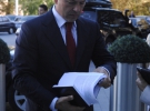 "Где мой дневник?", - спрашивает вице-премьер. Ему подают толстый кожаный блокнот. Идет к выходу. Его останавливает седой мужчина в светлом костюме, отводит в сторону к столу и раскрывает папку с документами. Тигипко подписывает документы.