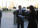 В 11.50 объявляют перерыв. Тигипко остается, чтобы ответить на вопросы журналистов. Рядом с ним стоит охранник.