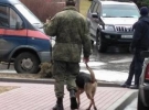 Медиков проверяют на наличие оружия, проводя через металлодетектор.