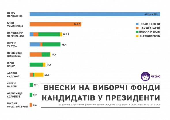 Среди кандидатов в президенты больше в свой избирательный фонд перечислил средств действующий президент Петр Порошенко. Об этом сообщают в движении "Чесно".