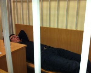 На реплику о том, что журналисты видели Луценко, который лежал на скамье в клетке, Лобан ответил, что "присутствующие в зале СМИ видели, как нардеп Арьев достал свой телефон с фотокамерой, попросил Луценко лечь на лавку, сфотографировал его, а затем Луценко со скамейки встал, и лежал он там только те 5 секунд пока Арьев делал это фото".