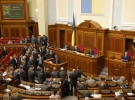 Оно началось с блокирования работы парламента представителями Партии регионов. Однако это не помешало прийти в зал президенту Украины Виктору Януковичу и премьеру Николаю Азарову вместе с председателем Верховного и Конституционного судов Василием Онопенко и Анатолием Головиным приняли участие в приведении новоизбранных судей КСУ к присяги. После этого спикер Рады объявил об исключении 28 депутатов из фракции БЮТ