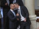 Несколько секунд перешептывается с Рыбаком и возвращается к трибуне. Говорит о вопросах, оппозиция намерена обсудить с гарантом.