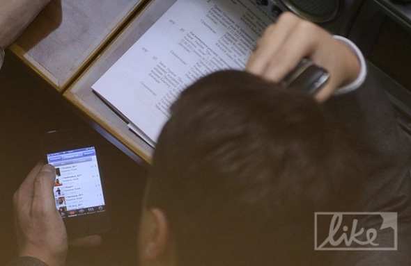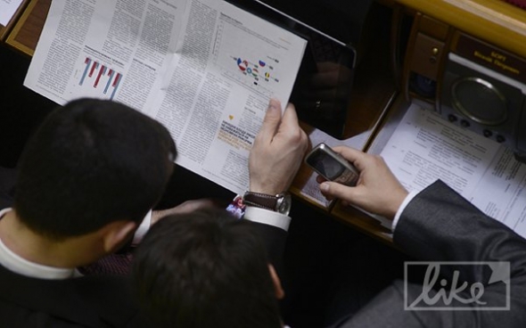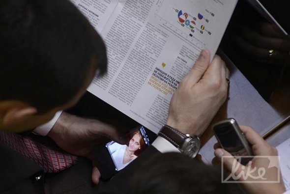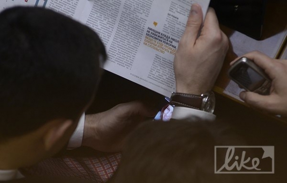 Мобильный телефон народные избранники старательно прикрывали журналом "Український тиждень" со статьей об экономических реформах.
