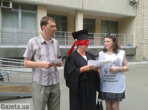 Также митингующие провели перфоманс, которым показали "слепых" судей, что принимают во внимание не документы, а деньги. Так, одна из участниц надела мантию судьи, а на глазах завязала красную повязку. Несколько других участников, представлявших заинтересованную сторону, дали "судьи" деньги, после чего она согласилась взять фиктивные документы.
