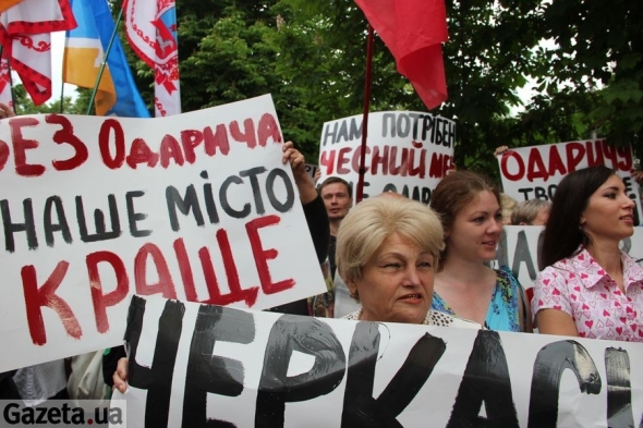 В Черкассах состоялось первое судебное заседание по делу Сергея Одарича о признании противоправным и отмене решения о досрочном прекращении полномочий городского головы. С самого утра под стенами Сосновского районного суда собрались сторонники и противники бывшего мэра. Люди продолжили стоять до конца короткого судебного заседания. Сторонники Одарича скандировать "Тулуб вон!". Через полчаса и те, и те разошлись.