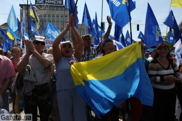 Три оппозиционные силы - "Батькивщина", "Свобода" и УДАР провели финальный митинг в рамках всеукраинской акции "Вставай, Украина!". Колона собралась на Европейской площади и прошла в сторону Майдана. Возглавляли ее - лидеры оппозиционных фракций Виталий Кличко, Арсений Яценюк и Олег Тягнибок.