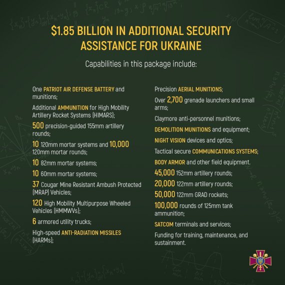 Также Резников опубликовал инфографику, на которой отображается, что именно и в каких объемах получит Украина в рамках нового пакета военной помощи.