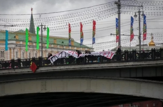 "Кризис неизбежны", "ФСБ - враги народа" - с такими надписями активисты развернули баннеры на мостах и зажгли файеры. Соответствующие фото появились в социальных сетях.