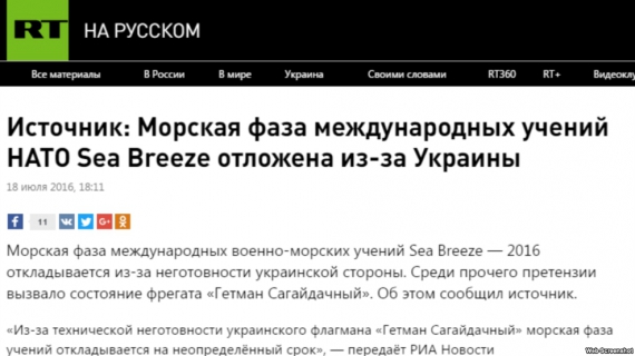 Российские СМИ распространяют фейковые новости о том, что Украина якобы сорвала масштабные украинско-американские учения Sea Breeze-2016.