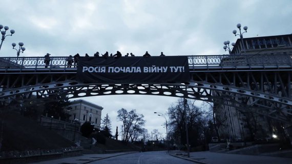В четверг утром на Аллее Героев Небесной сотни вывесили баннер "Россия начала войну здесь!" Фото опубликовало движение "Відсіч".