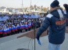 Акция во Владивостоке прошла под девизом "Приморье - за стабильность". По данным городской полиции, митинг собрал на Корабельной набережной Владивостока около 3 тысяч человек. Многие участники акции надели жилетки с цветами российского триколора и надписью на спине "Я - за Путина!", передает РИА "Новости".
