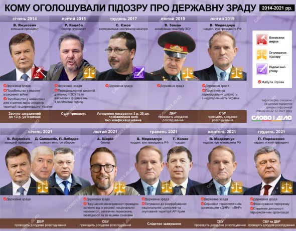 С 2014 года подозрение о государственной измене объявляли бывшим чиновникам, блоггерам и нардепам.