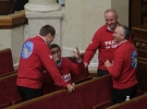 К трибуне идет "ударовец" Павел Розенко. Представляет свой ??законопроект об отмене некоторых норм пенсионной реформы. Объясняет, что нужно ввести единый принцип начисления пенсии членам правительства, президенту, народным депутатам и обычным гражданам. Депутаты голосуют. "За" - 210.