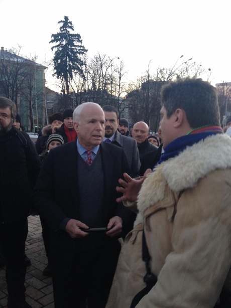 Сенатор Джон Маккейн, который 14 декабря прибыл в Киев, провел встречи с лидерами оппозиции, главой МИД и патриархом Филаретом.