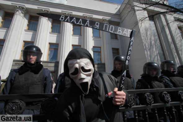 - Смерть "регионалам", - кричит басом митингующий Виталий Иванко.