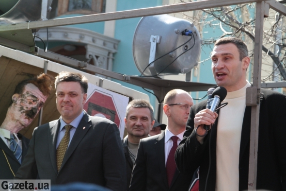 - Спасибо, что пришли, - говорит Тягнибок. - Мы идем сейчас внутрь. Будем работать в парламенте. А вы - снаружи. Если проголосовать за постановление о выборах городского головы не удастся - придем к вам советоваться что делать дальше. А наши действия будут радикальными.