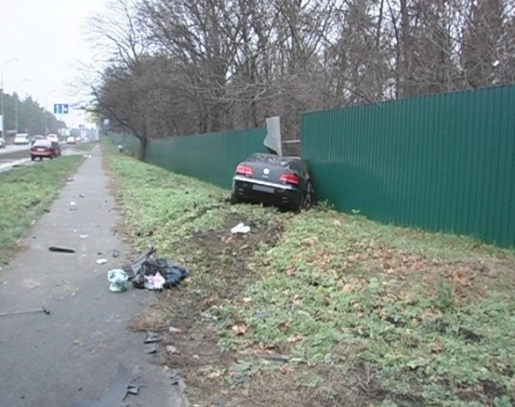 "На перекрестке разворачивался возрастной мужчина на "Опеле". "Фольцваген" летел на красный свет, зацепил "Опель", вылетел на бровку и протаранил забор санатория "Конча-Заспа", - говорится в сюжете.